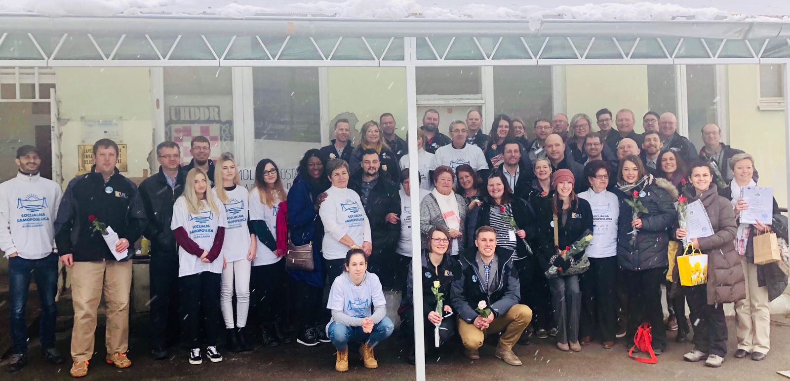 The Osijek Social Supermarket was our first visit after arriving in Osijek, Croatia last evening. We were welcomed with individual roses, traditional breads and a variety of cheese and meat. The women, men and teenagers welcoming us were all volunteers at the social supermarket. Stefica Cucak, the founder and President, is often described as the “Mother Teresa of Croatia”. With a heart of gold and an unbelievalbe passion for helping others this woman, along with her team of volunteers are providing food for 1,450 hungry families. These families are very poor and often do not have food to eat each day. Stefica said that the smiles that appear on the children’s faces when they see food is the reason they can keep working so hard. Our MARL classmates were so moved by this experience that tears welled up in some eyes and donations were freely given to help the social supermarket reach more hungry people in the town of Osijek.