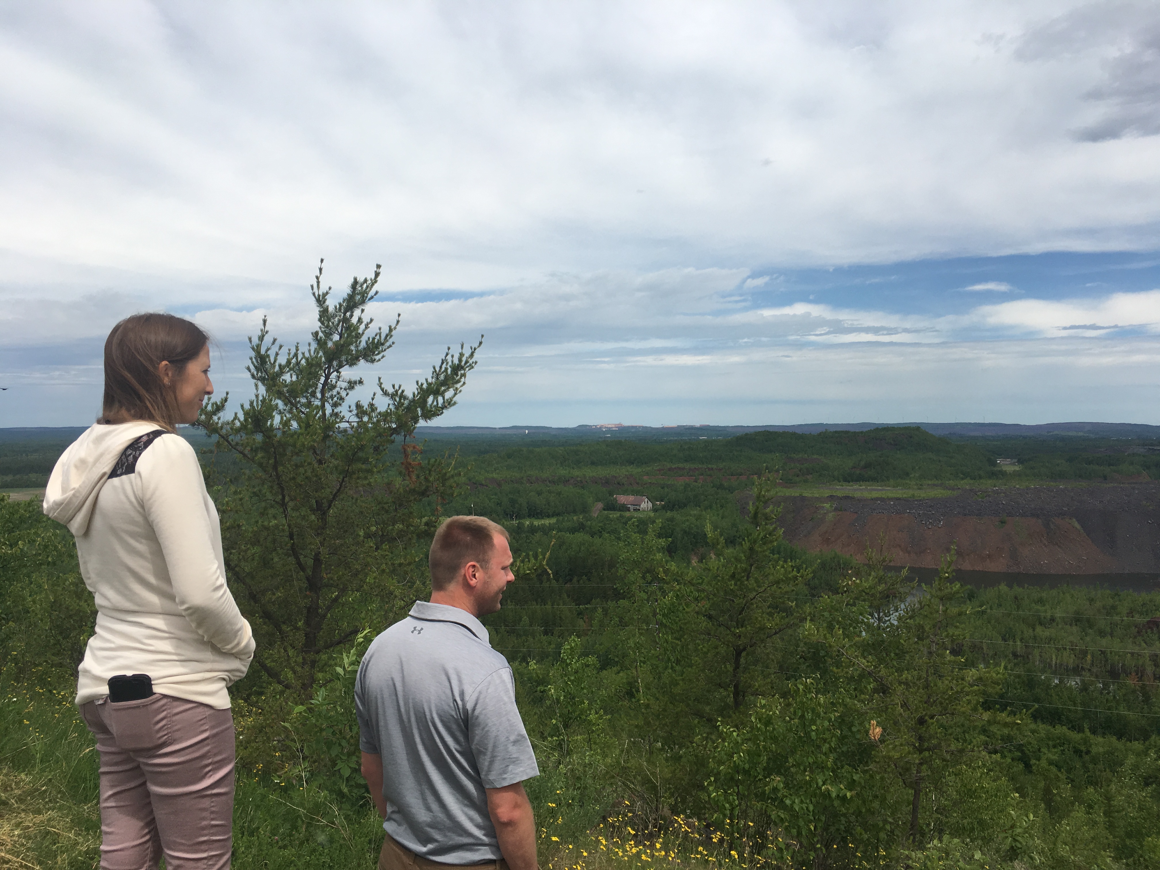 We started our day with the sunrise in order to tour as much of the Iron Range as was possible. While traveling by bus,Kelsey Johnson, President of the Iron Mining Association, shared that iron ore mining began in Minnesota 130 years ago. The Iron Range, which is identified as a narrow strip of land rich in iron ore stretching from Grand Rapids to Babbitt, Minnesota is home to eleven mines, of which only six are actively operating today. The cities of the Iron Range were literally built next to the mines so workers could get from their homes to work. Iron mining played a primary role in the development of the city of Duluth which is now the busiest port on the five Great Lakes.