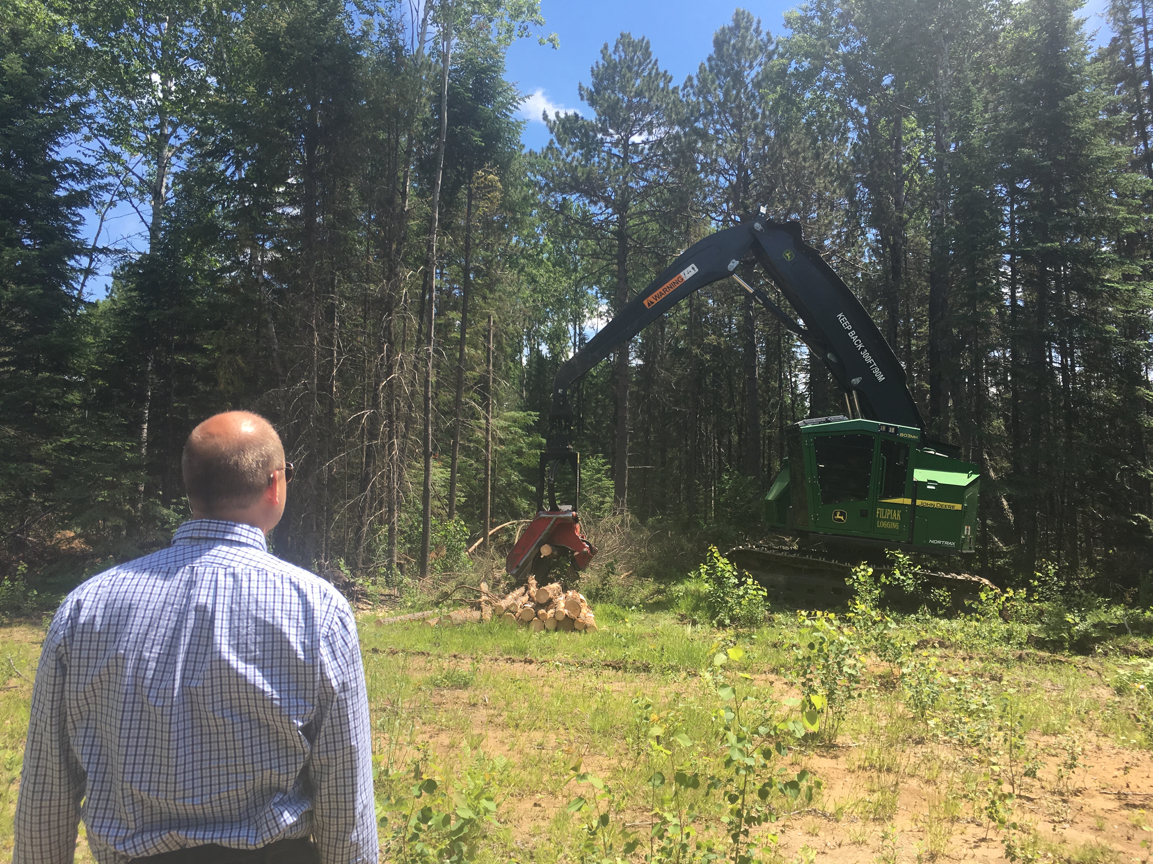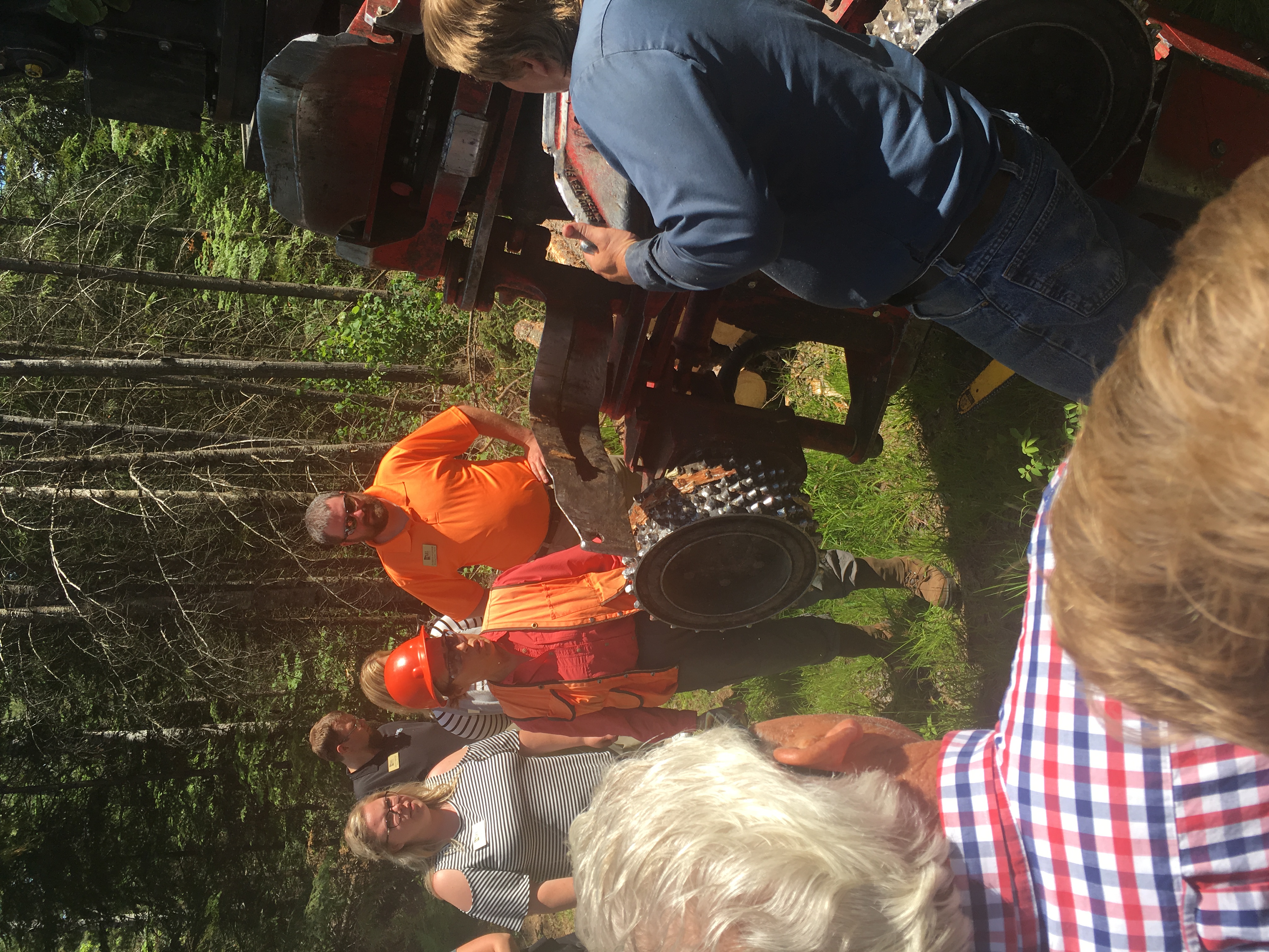 Following our mine tour and a stop at the IRRRB we were able to get up close and personal to another significant part of the economy in North Eastern MN, Forestry and the logging industry. Cheryl Adams, Forest Resource Manager at the UPM Blandin Paper Company, guided our Coach bus smack into the forest where we watched logging in action. The Blandin Paper Company was built in 1902 to provide news print for the St. Paul Pioneer Press. Blandin oversees forests on 188,000 acres of land in North Eastern Minnesota. Contrary to what many may believe about timber harvesting, Adams made a surprising distinction that timber harvesting is about growing trees by using techniques to create optimum conditions so trees grow better. Natural occurrences such as fire and weather events used to take care of this on a more regular basis than we see now. Blandin Paper Company plants 700,000 trees every spring and only harvests Aspen, Balsam and Spruce.