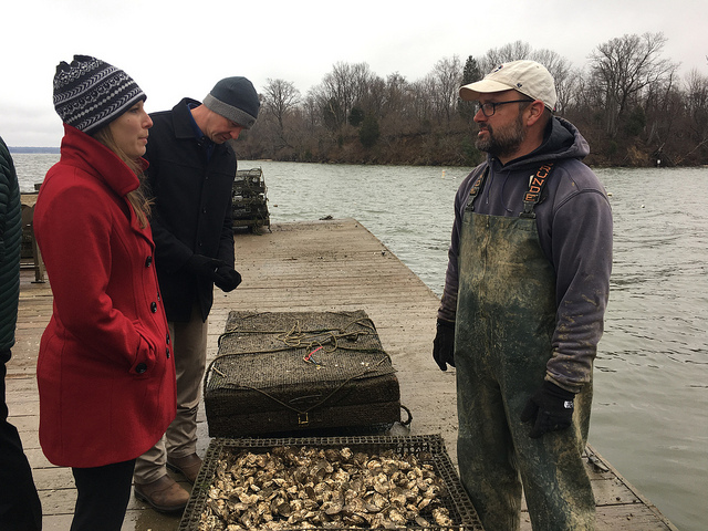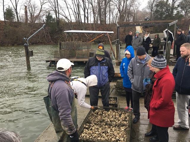 Our first stop was at Hollywood Oysters which is located on the Patuxent River in Maryland which leads into Chesapeake Bay. The owner, Tal Petty, told us about issues that impact his aquaculture farm like such as urbanization, government regulation, desalination of the bay from heavy rains and neighbors who support his farm, but do not care to have it in their back yard.